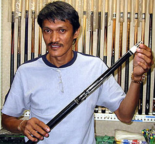 Edwin Reyes氏が開発した独創的なキュー製作の技術を忠実に踏襲し、Edwin Reyes氏の直系の弟子職人が当社の監修のもとに製作するのがSuperBilliard
